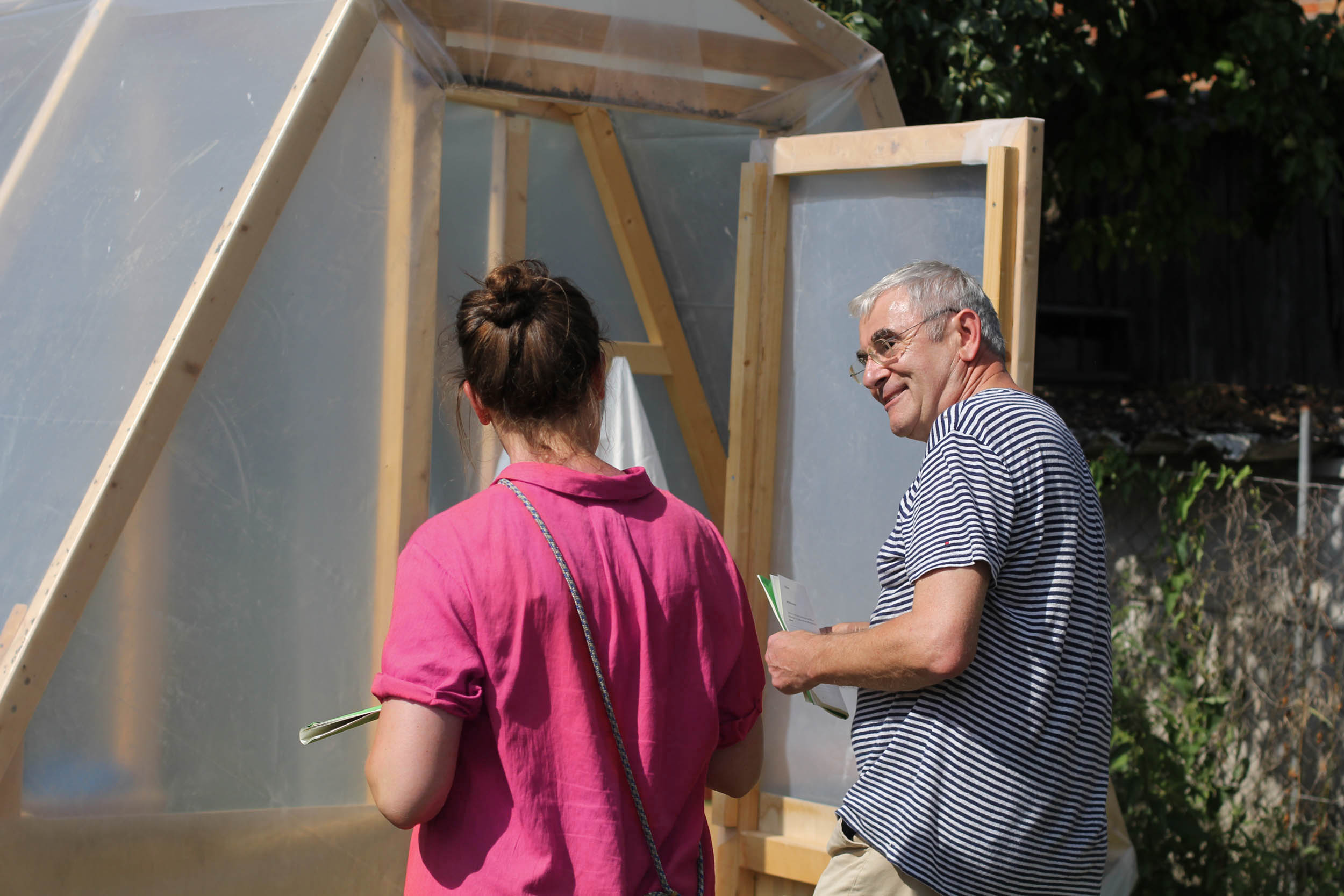 Kurze Einweisung vor dem Betreten unserer Gewächshausinstallation