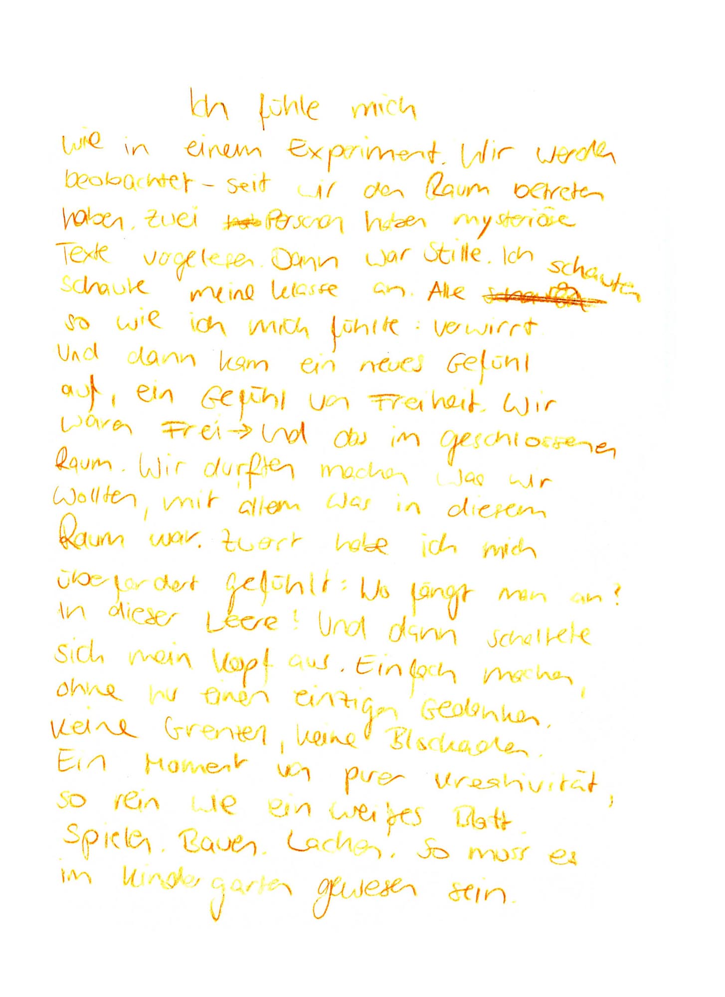 This Vague Space workshop was held for students of Jung von Matt Academy. The objective was open up the students minds and to further group strengthening. For this workshop, we included writing as a means to conclude the observations and thoughts from the hands-on investigation.